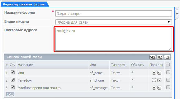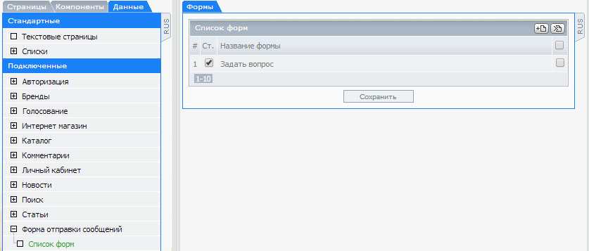 Модуль формы отправки сообщений предназначен для управления формами обратной связи с вашего сайта.
