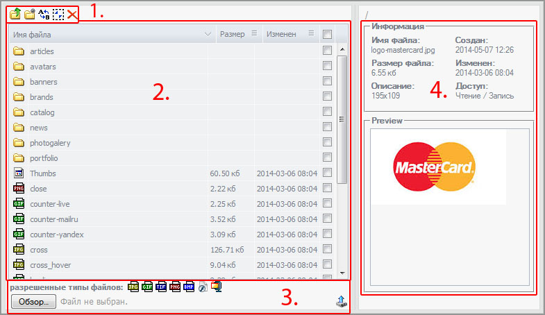 Работа с мультемедийными файлами на сайте производится через "библиотеку изображений"