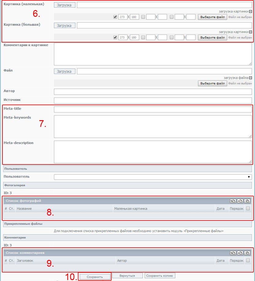 6. Картинка (маленькая): маленькая иконка у статьи (отображается на списке статей).
