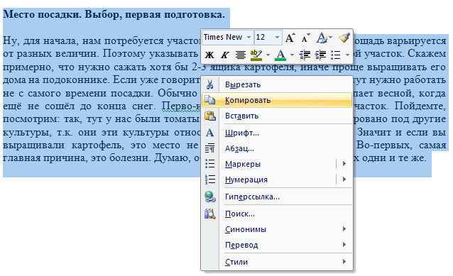1. Копировать текст ( из Word, Excel, другого сайта)