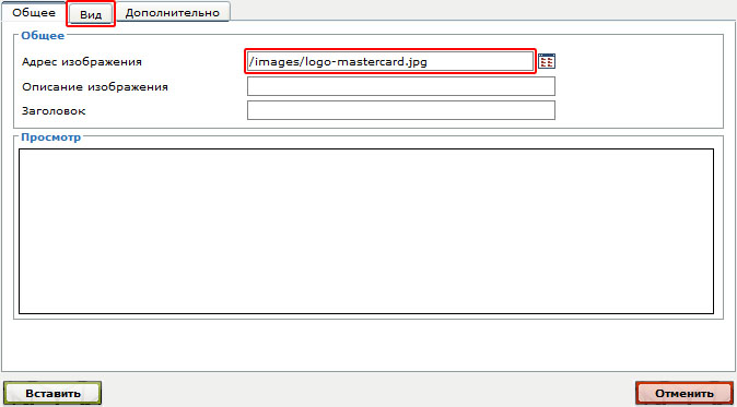 В результате, в поле "Адрес изображения" будет прописан путь к картинке, и можно стилизовать ее положение и размеры через вкладку "Вид".