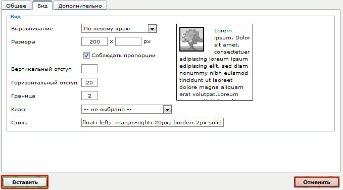 Завершив все процедуры, нажимаете "Вставить" и картинка будет установлена в вашем тексте.