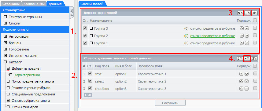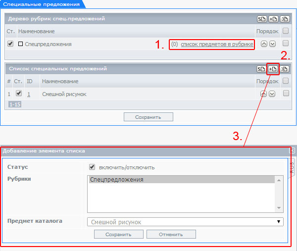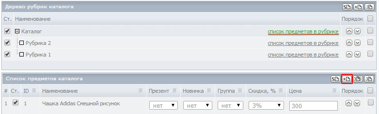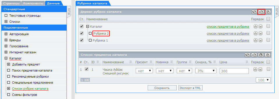 1. Работа с рубрикам и разделами каталога.
