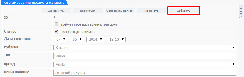 - из левого навигационного меню "Каталог" - "Добавить предмет"