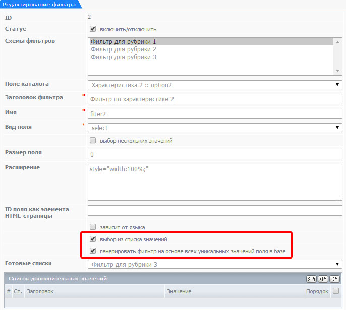 Фильтра предназначены для отбора товаров по нужным параметрам на сайте. Они создаются на основании добавленных характеристик товаров.
