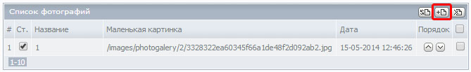 Для работы с фотогалереей, необходимо зайти на нужный элемент раздела и там где указана таблица "Список фотографий" добавлять фото.